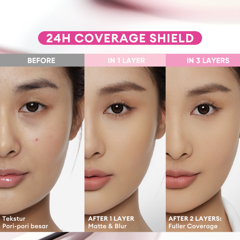 1. Aplikasikan two way cake ke wajah menggunakan spons aplikator 2. Ulangi penggunaan toad coverage sesuai keinginan