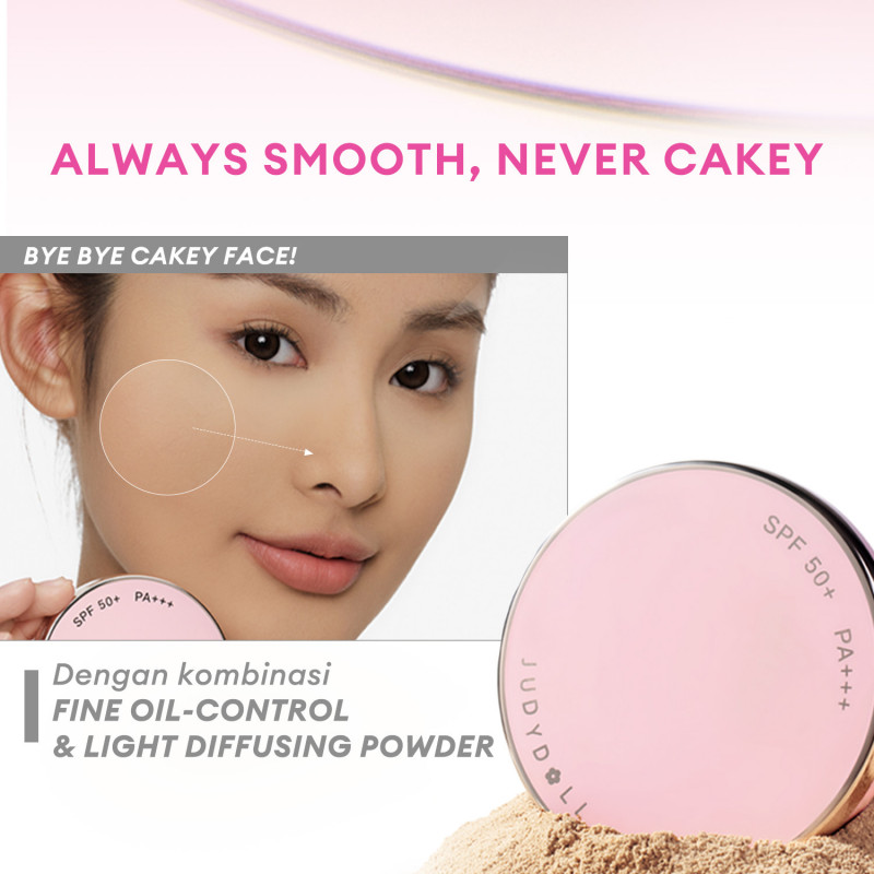 BARU! Judydoll Triple Pink Shield Two Way Cake. ALWAYS SMOOTH NEVER CAKEY. Two way cake terbaru dari Judydoll yang memberikan proteksi dengan SPF 50+ PA+++ dengan hasil matte & blur yang tahan selama 24 jam.