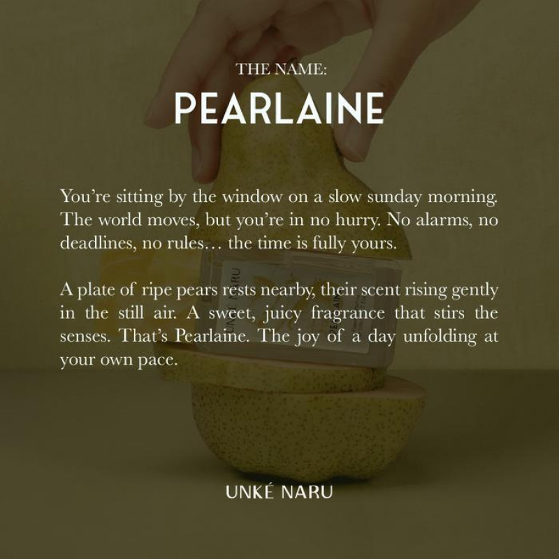 A plate of ripe pears rests nearby, their scent rising gently in the still air. A sweet, juicy fragrance that stirs the senses. That’s Pearlaine. The joy of a day unfolding at your own pace.