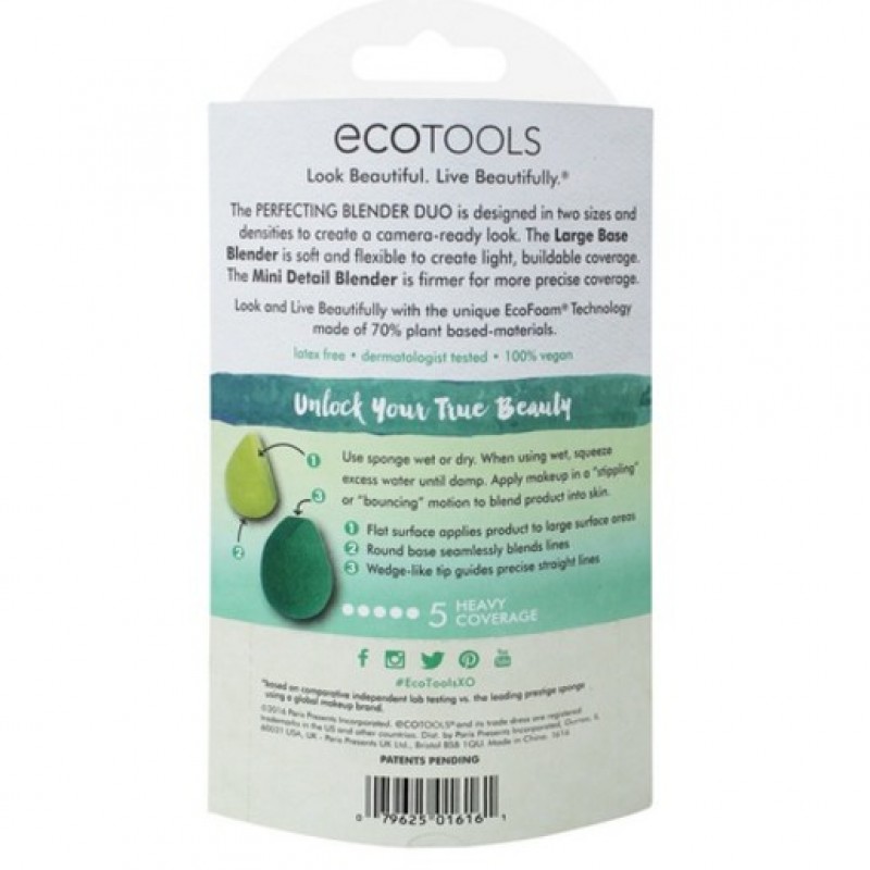 The PERFECTING BLENDER DUO is designed with EcoFoam® Technology in two sizes and densities to create a camera ready look. The Large Base Blender is soft and flexible to create light, buildable makeup application. The Mini Detail Blender is firmer for more precise and detailed coverage.