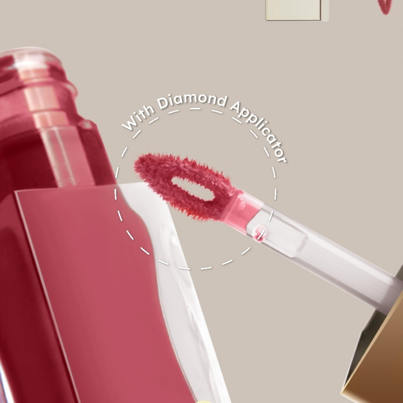 Apply the diamond shape applicator at the center of the lips, just under cupid's bow, and coloring the lips from right to left