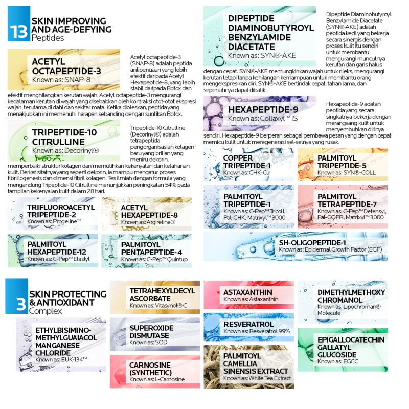 Ampoule pertama dengan peptida terbanyak, yaitu 13 jenis peptida regenerasi kulit.