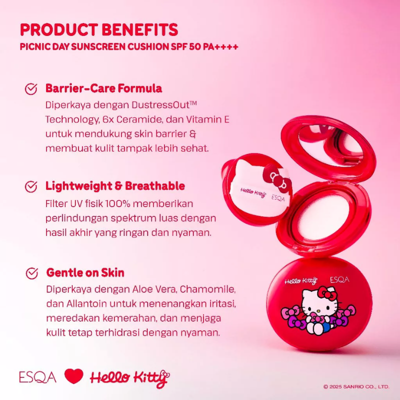 Enjoy worry-free fun under the sun with ESQA x Hello Kitty Picnic Day Sunscreen Cushion