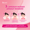 1.Basahi hidung yang sudah dibersihkan 2.Tempel Biore Pore Pack di hidung 3.Lepaskan setelah 10-15 menit (ketika Pore Pack terasa kaku)