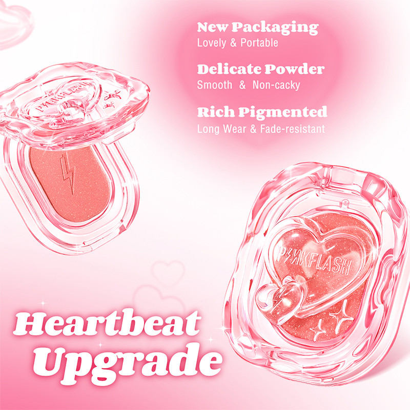 PINKFLASH Mellow Radiant Blush kini siap menemani harimu! Hadir dalam 7 warna cantik dengan packaging yang menggemaskan, teksturnya yang halus lembut secara instan memberikan rona yang memukau.