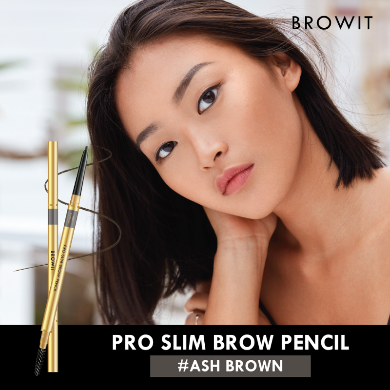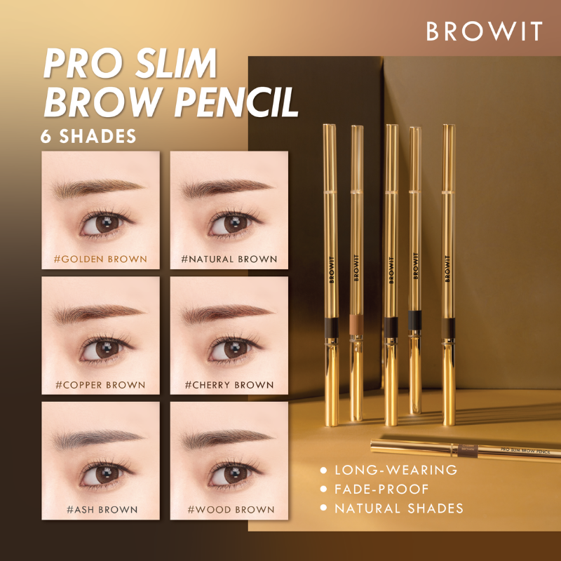 BROWIT PRO SLIM BROW PENCIL, pensil alis dengan kepala ramping untuk menggambar alis yang presisi dan profesional dengan Spoolie Brush yang memadukan dan melembutkan untuk hasil akhir alami.