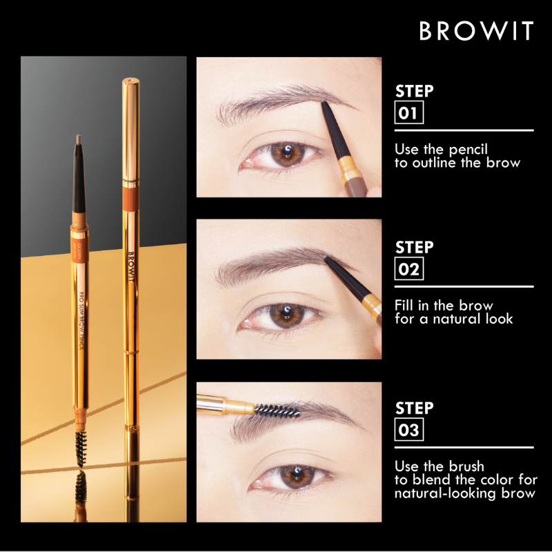 How to Use : Outline the brow with the pencil. Fill in the brow for a natural look Use the brush to blend the color for a natural-looking brow.