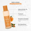 Aqua, Caprylic/capric triglyceride, PEG-40 hydrogenated castor oil, Butylene glycol, Propylene glycol, Alpha arbutin, Panthenol, Sea buckthorn (Hippophae rhamnoides) oil, Biosaccharide gum-1, Cucurbita pepo fruit extract, Curcuma longa (turmeric) root extract, Glycerin, Ethylhexylglycerin, BHT, Tetrasodium EDTA, Phenoxyethanol, Chlorphenesin, Sodium bisulfite, 1,2-hexanediol, Styrene/acrylates copolymer, Triethanolamine, CI 14700, CI 19140, Citric acid