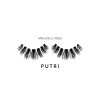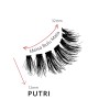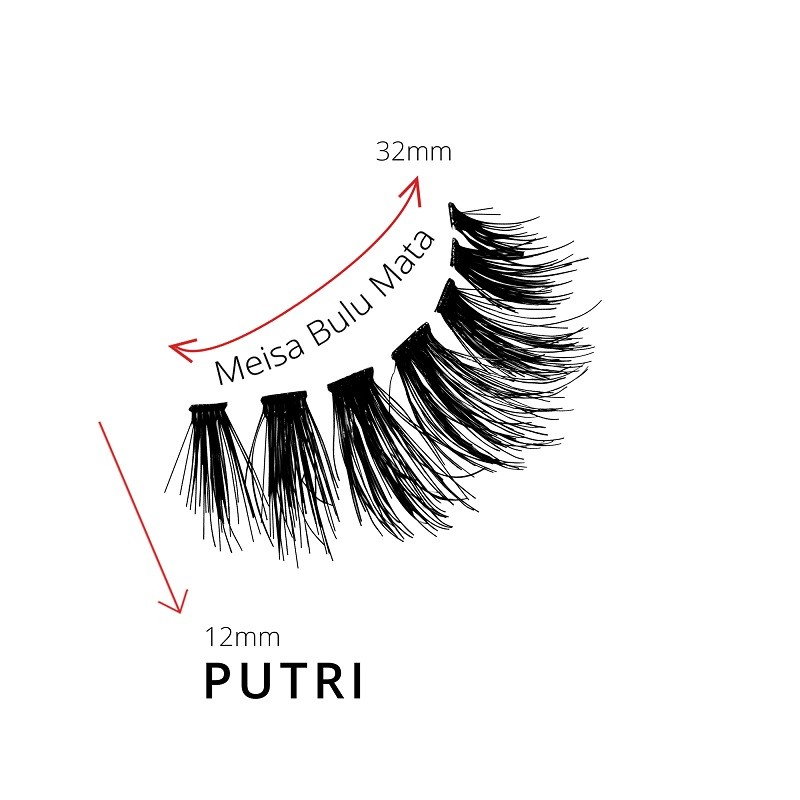 Bubuhkan sedikit perekat (lem bulu mata palsu) pada bagian pangkal bulu mata palsu. Rekatkan bulu mata palsu di atas bulu mata asli. Rekatkan perlahan dari bagian luar ke bagian dalam garis mata. Untuk melepasnya, lepaskan perlahan dari bagian luar ke bagian dalam garis mata.