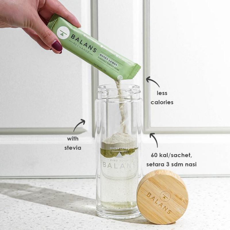 Note: Balans Recharge bukan obat diet/obat pencahar, tapi minuman serat yang memanfaatkan fungsi serat alami untuk melancarkan pencernaan dan mendukung program diet.