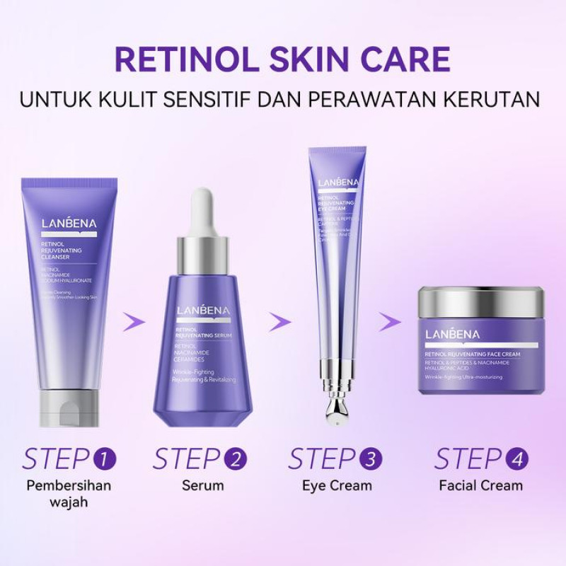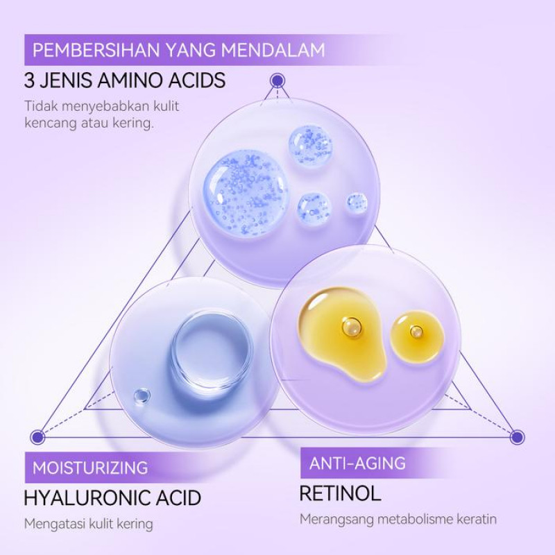 Lanbena Retinol Rehydrating Cleanser adalah pembersih wajah dengan efek ganda: membersihkan secara mendalam sekaligus memberikan perawatan anti-aging. Diperkaya dengan retinol berteknologi double encapsulation, 3 jenis amino acids, dan hyaluronic acid, formula ini mampu membersihkan kotoran hingga ke pori, menghidrasi kulit kering, dan mengurangi tampilan garis halus tanpa membuat kulit terasa kering atau tertarik.