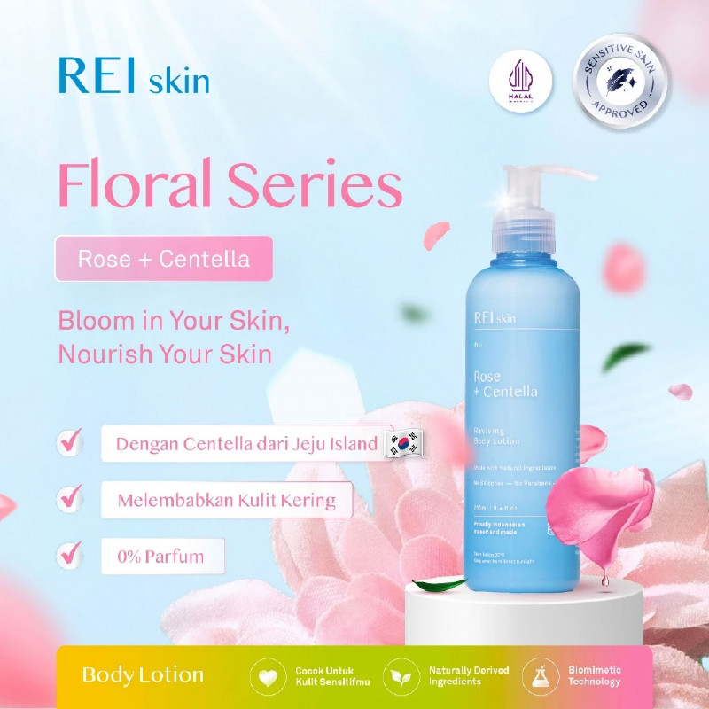 Body lotion mengandung ekstrak rose dan centella asiatica yang sangat melembabkan kulit, cocok untuk kulit kering. Kaya akan antioxidant. Mudah di serap kulit dan tidak berminyak.
