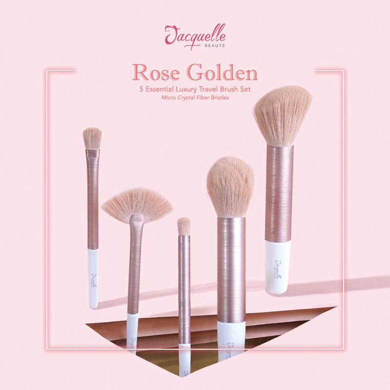 Jacquelle Rose Golden terdiri dari 5 kuas essential yang travel-friendly dilengkapi pouch kulit yang handy.