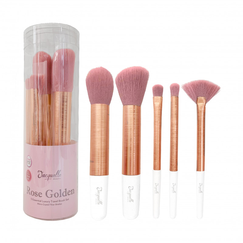 Dengan kualitas kuas yang lembut,Jacquelle Rose Golden Travel Brush Set mengangkat lebih banyak produk sehingga menghasilkan hasil makeup yang pigmented dan sempurna.