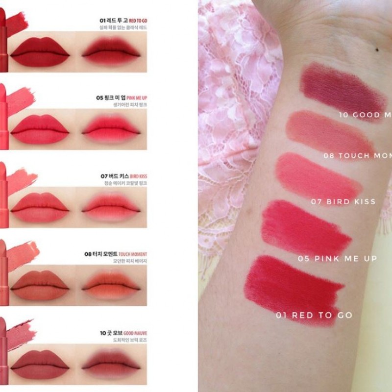 Formulanya sangat lembut, tidak bikin bibir kering meski gak pakai lip balm, ketahanannya standar tapi lunturnya cantik gak langsung luntur total :)