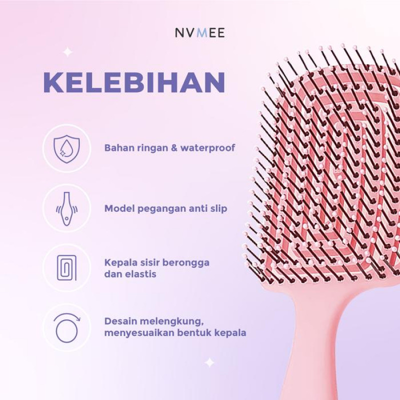 1. Bahan ringan & wateroof 2. Model pegangan anti slip 3. Kepala sisir berongga & elastis 4. Desain melengkung, menyesuaikan bentuk kepala