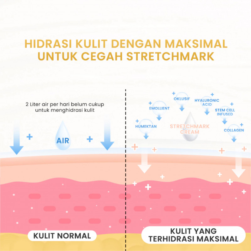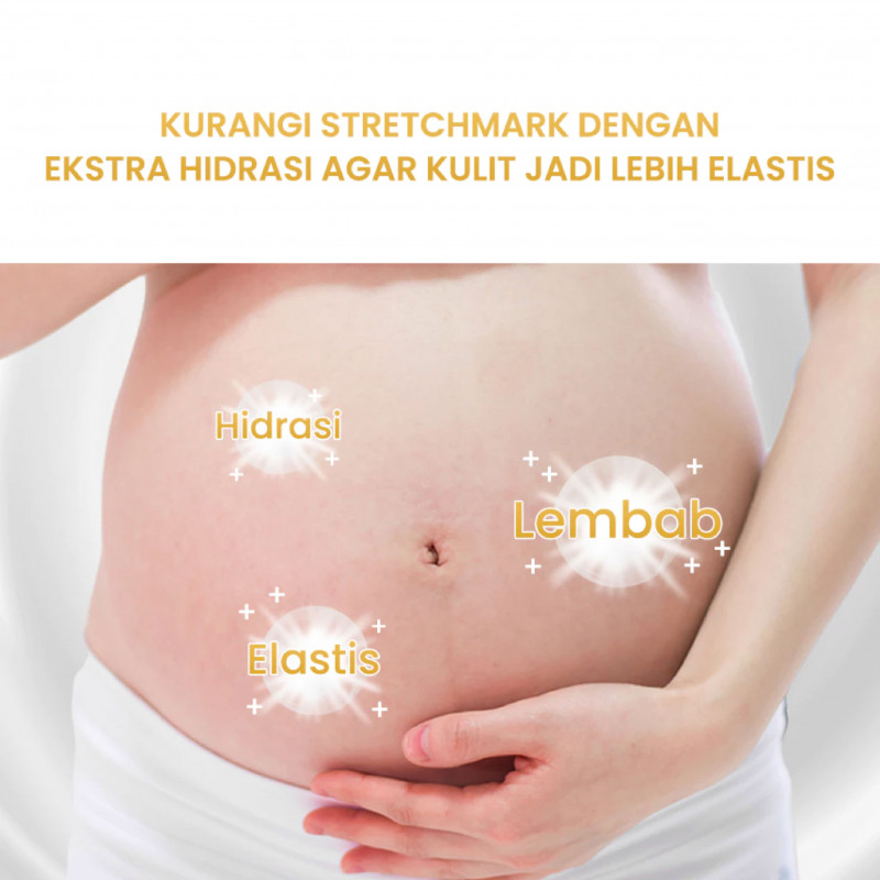 Dengan pemakaian rutin, kulit akan terasa lebih lembut, kenyal, dan sehat, sehingga mampu beradaptasi lebih baik terhadap peregangan selama kehamilan.