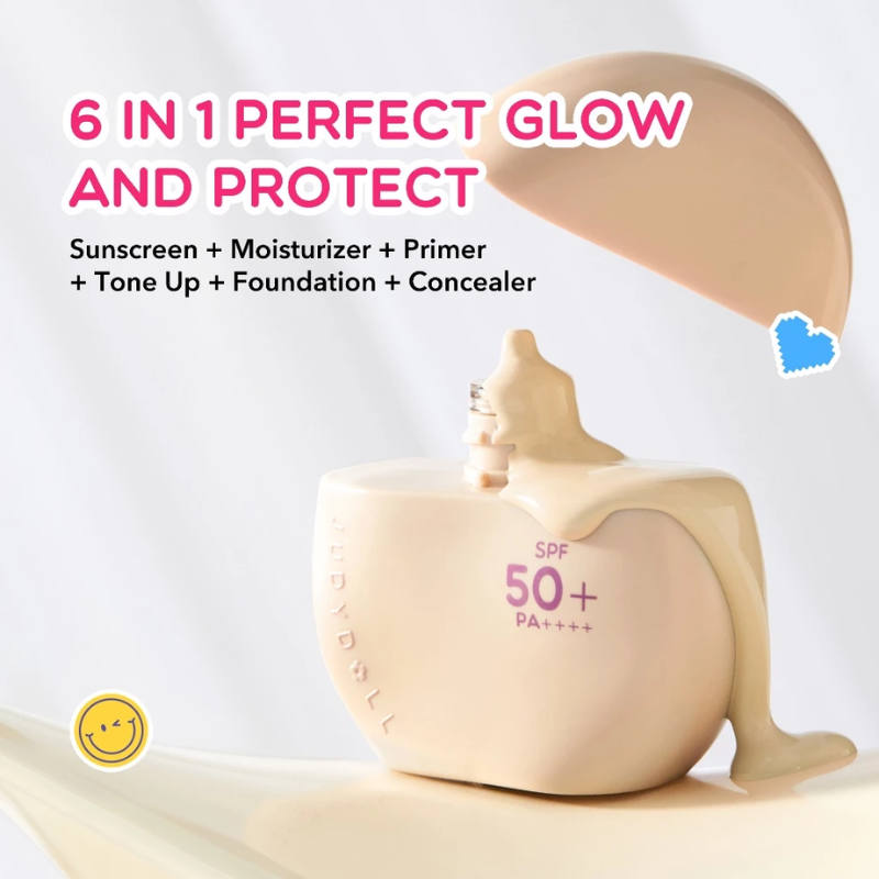 Judydoll Tinted Sunscreen - Sun Defense Tinted Moisturizer merupakan produk 6 in 1 yang bisa berfungsi sebagai moisturizer, sunscreen, primer, tone up, foundation dan concealer. Dapatkan hasil complexion yang skinlike dan natural dengan menggunakan 1 boba size. Produk ini sudah dipenuhi dengan SPF 50+ PA++++ untuk memberikan perlindungan pada wajah