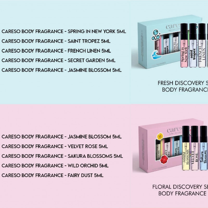 Discover the SWEET Discovery Set from CARESO's Body Fragrance collection, featuring a collection of fragrances inspired by scents and locations. A wonderful way of exploring the collection from CARESO and a perfect gift to give or receive.