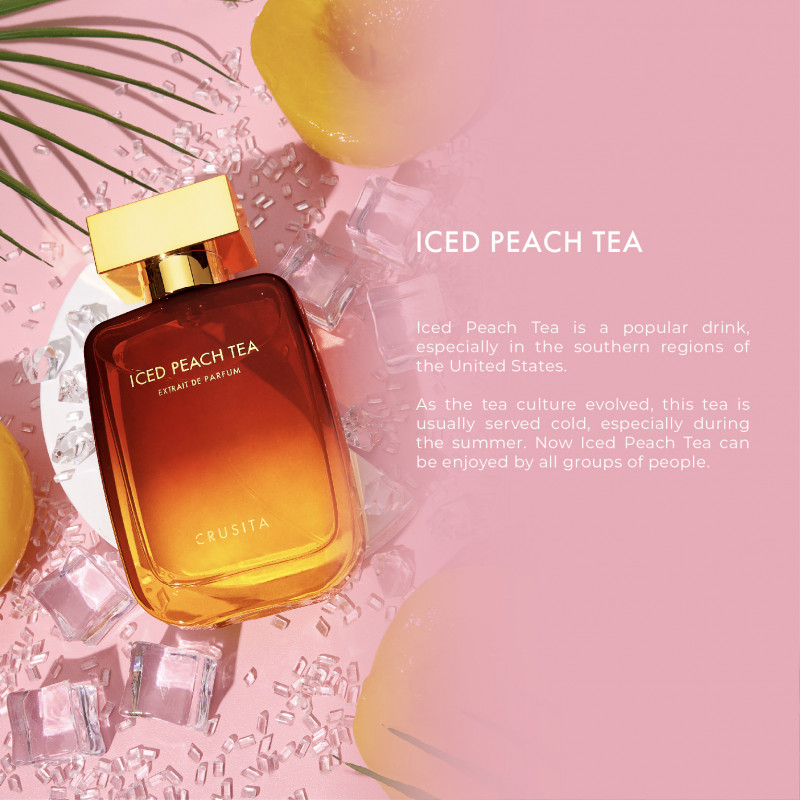 Iced Peach Tea Top Note : Mathe, Bergamot Middle Notes : Peach Tea, Rose, Magnolia Base Notes : Cedarwood, Dry Amber