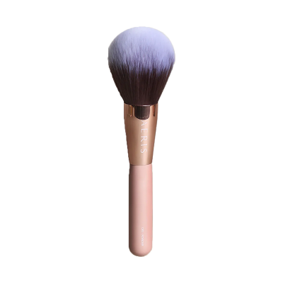 A tiny fan brush with a graceful sweep. This brush is perfect for building up highlighters from a subtle to a full impact glow.