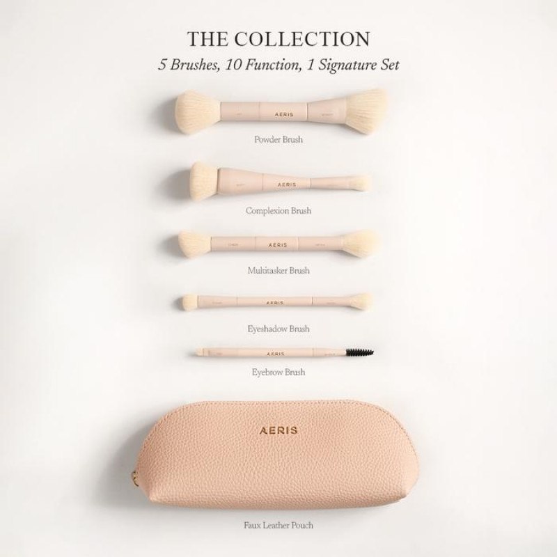 The Signature Dual-Sided Brush Set terdiri dari 5 kuas dengan 10 fungsi dalam satu set: