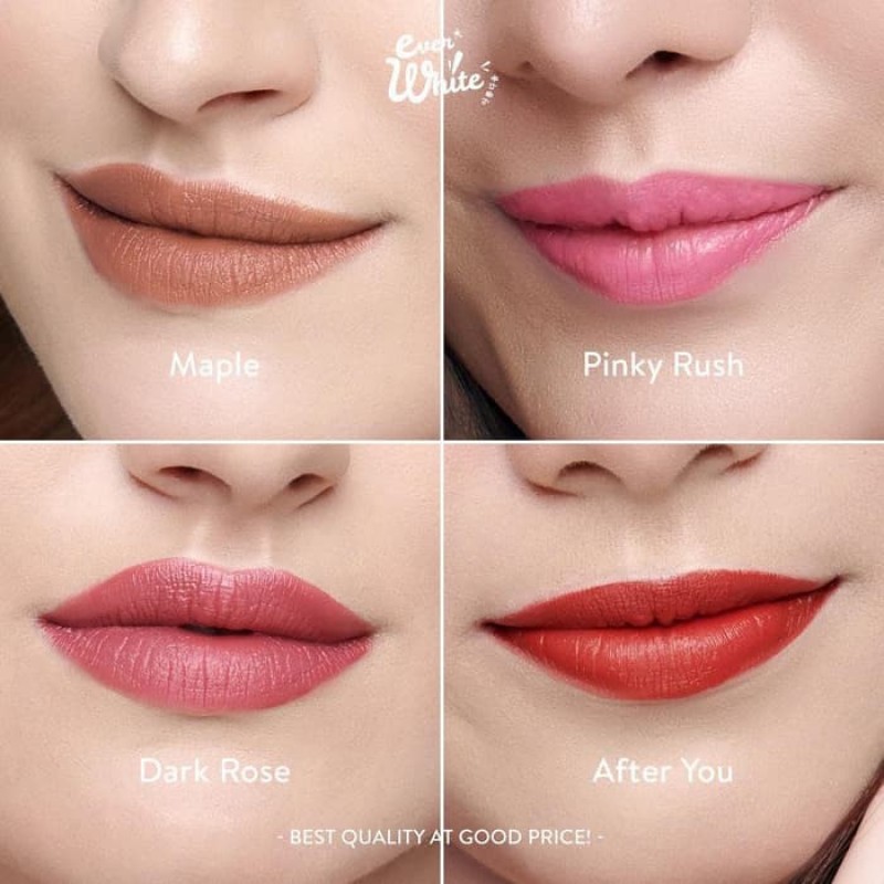 Lip Cream dengan tekstur yang lembut, ringan serta moist tidak membuat bibir kering, dan long-lasting / tahan lama.