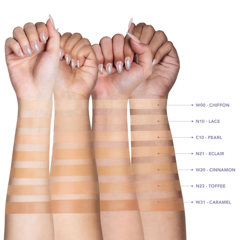 Water, Titanium Dioxide, Cyclopentasiloxane, Trimethylsiloxysilicate, Propanediol, Isododecane, Diphenylsiloxy Phenyl Trimethicone, Dimethicone, Niacinamide, PEG-10 Dimethicone, Octyldodecanol, Methyl Trimethicone, Polyglyceryl-3 Polydimethylsiloxyethyl Dimethicone, PEG/PPG-18/18 Dimethicone, 1,2-Hexanediol, Disteardimonium Hectorite, Magnesium Sulfate, Silica, Aluminum Hydroxide, Polyglyceryl-4 Isostearate, Methylpropanediol, Stearic Acid, Triethoxycaprylylsilane, Polyhydroxystearic Acid, Alumina, Potassium Sorbate, Lauric Acid, Isopropyl Titanium Triisostearate, Lauryl Alcohol Diphosphonic Acid, Neopentyl Glycol Diethylhexanoate, Trisodium Ethylenediamine Disuccinate, Glycerin, Butylene Glycol, Carbomer, Polysorbate 20, Palmitoyl Tripeptide-1, Palmitoyl Tetrapeptide-7, Copper Tripeptide-1, Acetyl Hexapeptide-8. May contain CI 77492, CI 77491, CI 77499