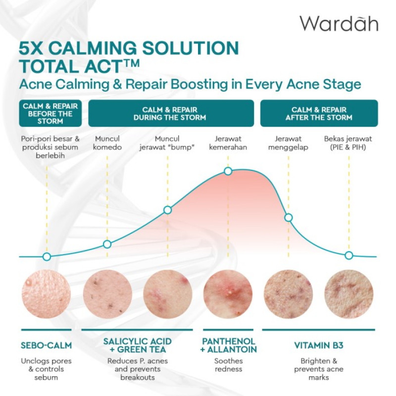 *Mengandung 5 macam Calming Solution: Salicylic Acid + Panthenol + Allantoin + Green tea + Vitamin B3