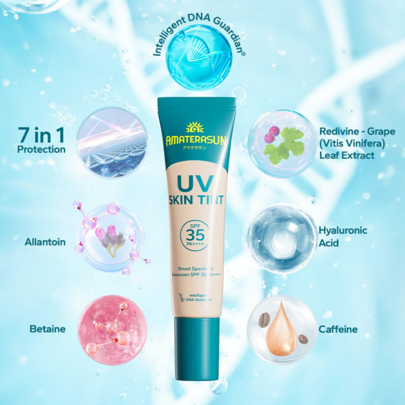 Vegan Skin Tint seringan air SPF 35 PA++++ dengan Intelligent DNA Guardian® & Hyaluronic Acid yang melindungi kulit dari sinar UV & polusi sekaligus menyamarkan tampilan pori, menghidrasi, & menghasilkan kulit sehat bercahaya. Coverage sheer-medium, non cakey, & non-ashy.