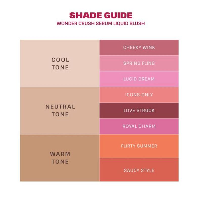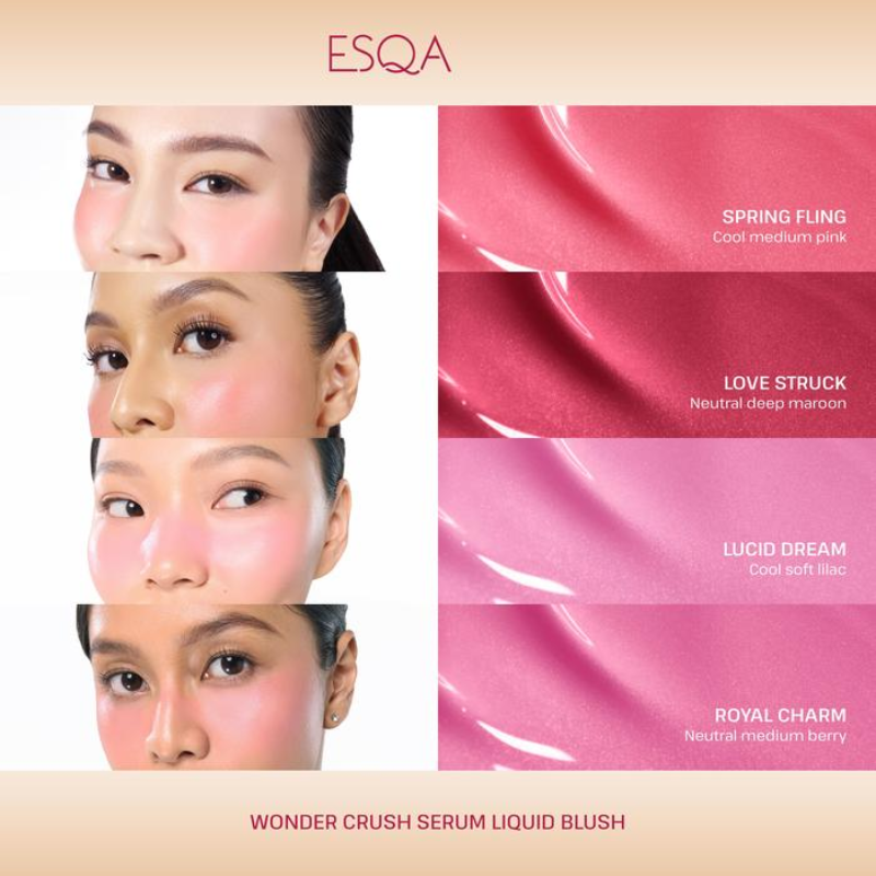 ESQA Wonder Crush Serum Liquid Blush adalah blush cair dengan tekstur creamy & ringan yang blendable dan tahan sepanjang hari. Dengan Dewy Fusion Technology untuk pipi tampak dewy & fresh.