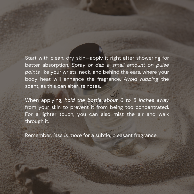 - Semprot parfum dari jarak 10-15cm - Pakai di bagian titik2 nadi seperti leher dan telapak tangan