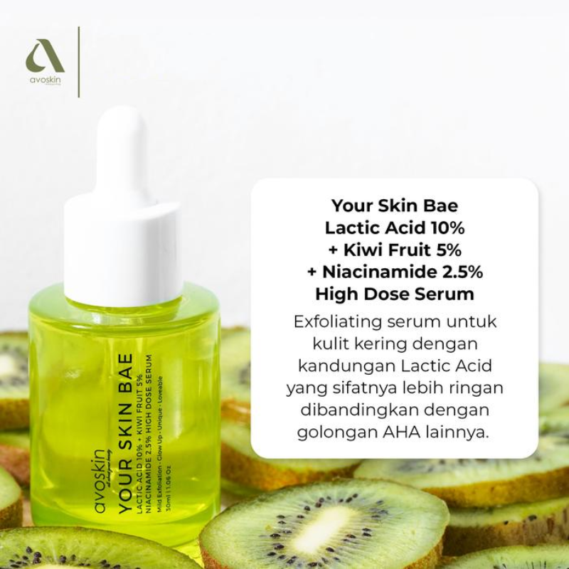 Serum dengan kandungan Lactic Acid, Niacinamide, dan Kiwi Extract yang bermanfaat sebagai anti aging agent melalui eksfoliasi lapisan kulit terluar. Memiliki kandungan antioksidan yang tinggi, kulit akan terlindungi dari bahaya sinar UV dan radikal bebas. Dengan penggunaan rutin, elastisitas kulit akan meningkat dan garis halus tersamarkan.